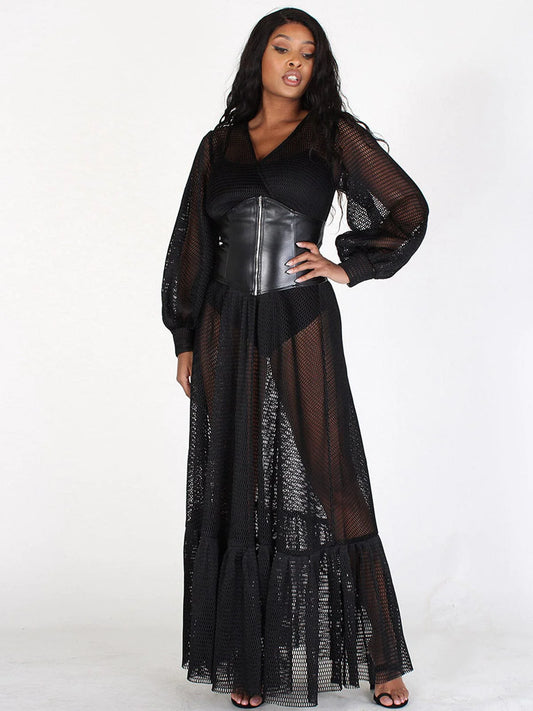 Black Plus Size Ruched Puffy Sleeve Bodycon Dress elegance sophistication