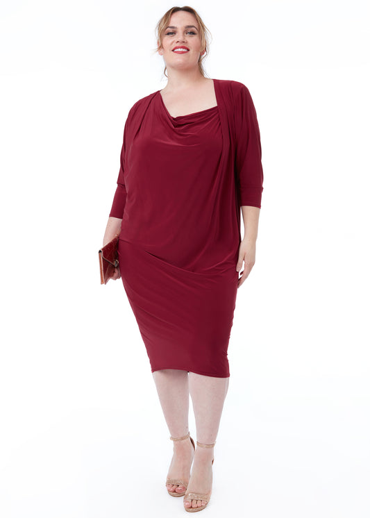 PLUS LOOSE FIT MIDI DRESS WITH ASYMMETRIC NECK