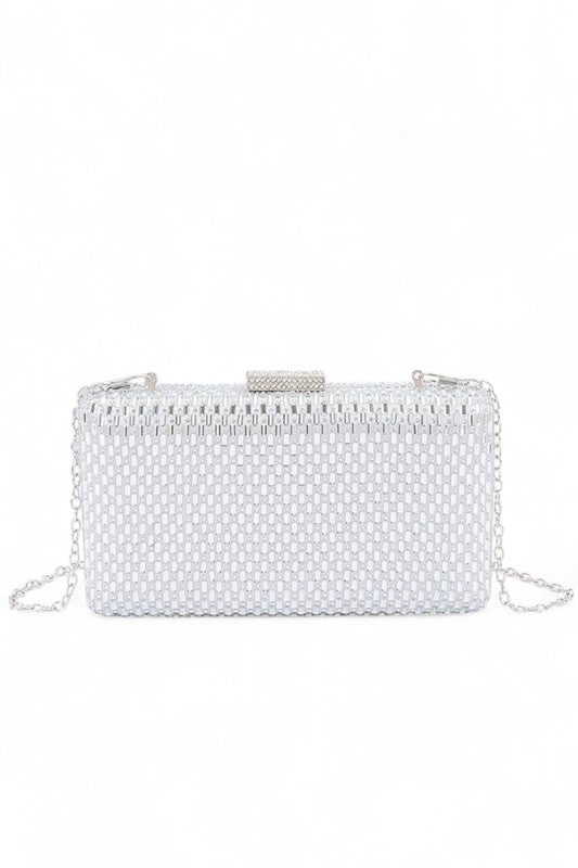 Pearl Rhinestone Beaded Top Handle Clutch Bag