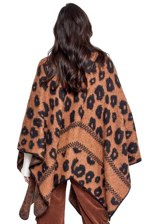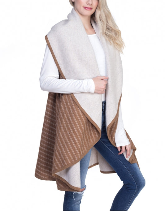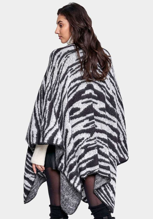 Zebra Open Front Knit Woven Kimono Poncho Wrap