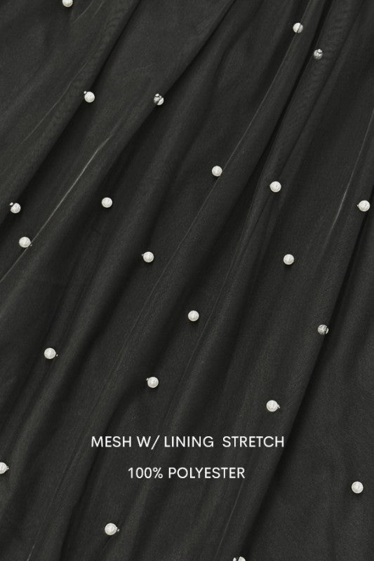 Elevate your wardrobe with this Off Shoulder Knit Jumpsuit, expertly crafted for a flattering fit and sophisticated style. The knit fabric ensures comfort and flexibility, while sheer sleeves add a delicate, airy contrast. Accented with subtle pearl details, this jumpsuit combines elegance with contemporary design, making it an ideal choice for both formal events and stylish daywear.